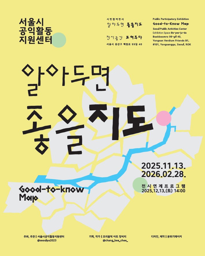 서울시공익활동지원센터에서 선보이는 기획전시 ‘알아두면 좋을 지도’는 서울 곳곳의 다정한 공익활동을 하나의 지도로 모으는 전시입니다.